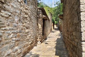 这里是名副其实的“石头王国”,六公里青石街巷蜿蜒,近两百座明清石屋依山而建,石板路、石屋、石碾等皆为青石打造,岁月痕迹明显。村内乾隆古井、古槐、大石碾等景致独具韵味,清明时节新绿点缀石墙,可沉浸式感受原生古村的古朴之美。